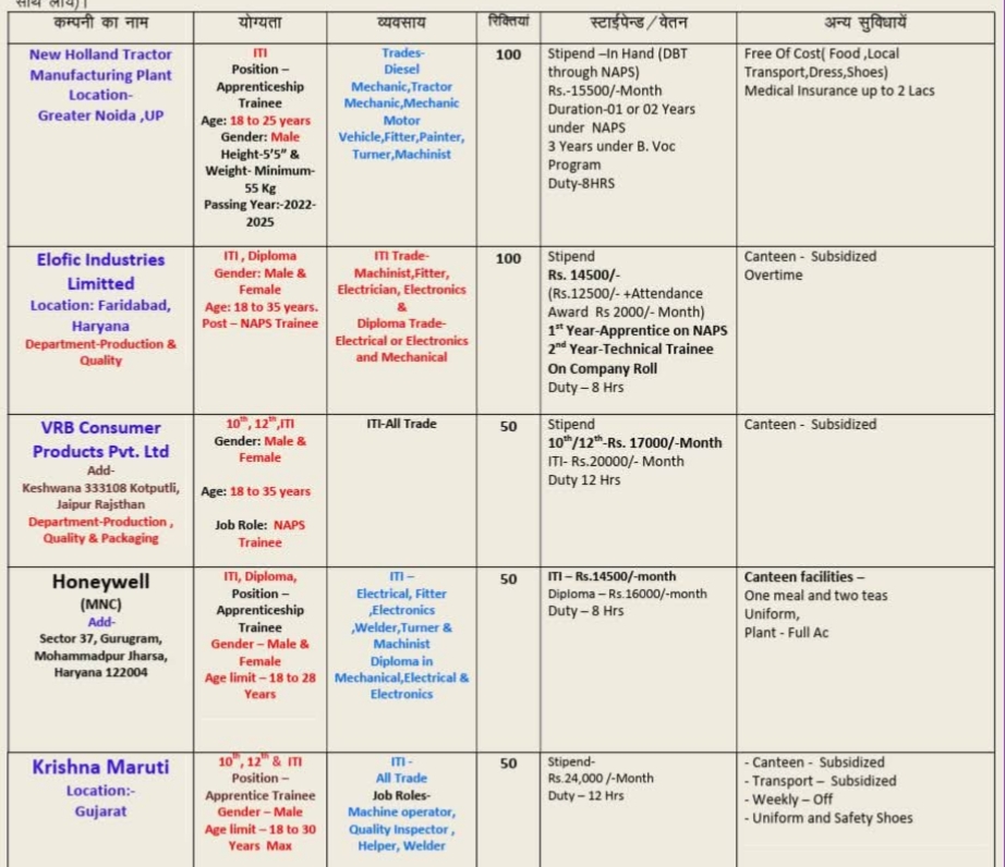 05 Company’s Campus Placement 2025 | Freshers | Trainee | 10th/12th/ITI/ Diploma | November 2025 |