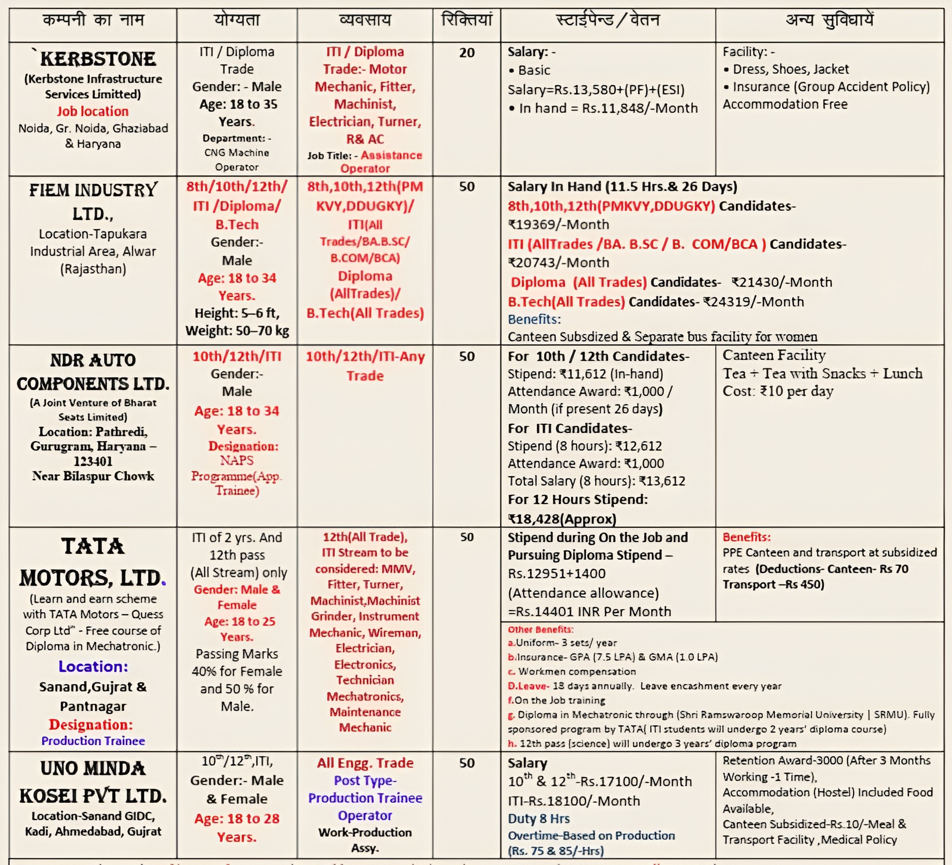 - UNO Minda Kosei Pvt. Ltd. – Sanand GIDC, Kadi, Ahmedabad (Gujarat)