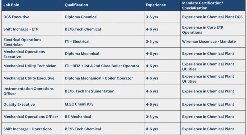 Job Location :- Dahej, Gujarat
