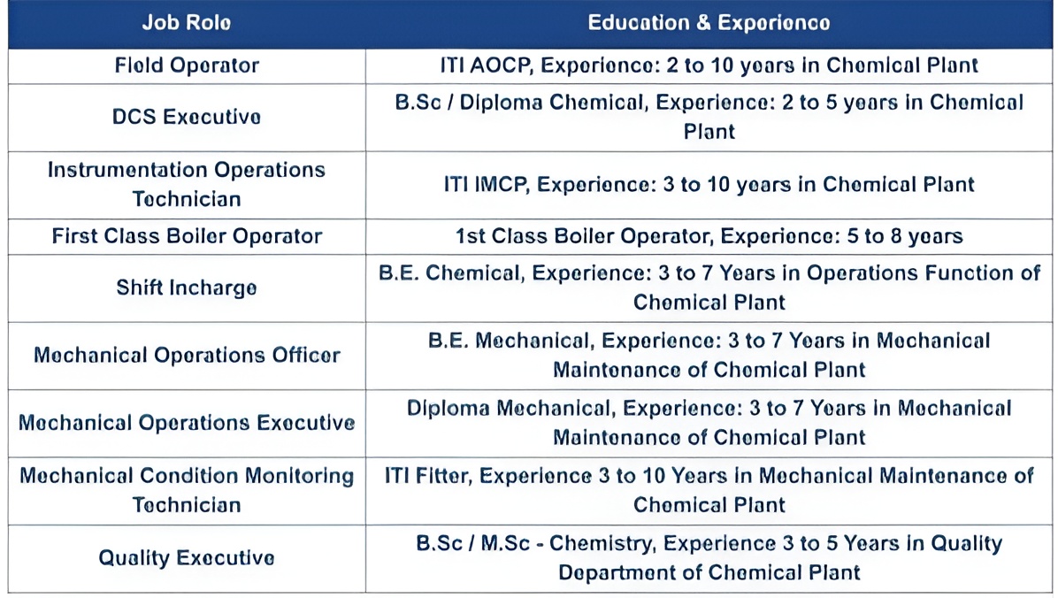 Positions :- Field Operator, DCS Executive, Shift Incharge & Others