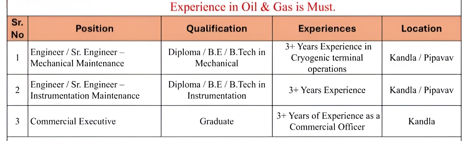 Job Location :- Pipavav OR Kandla (Gujarat)