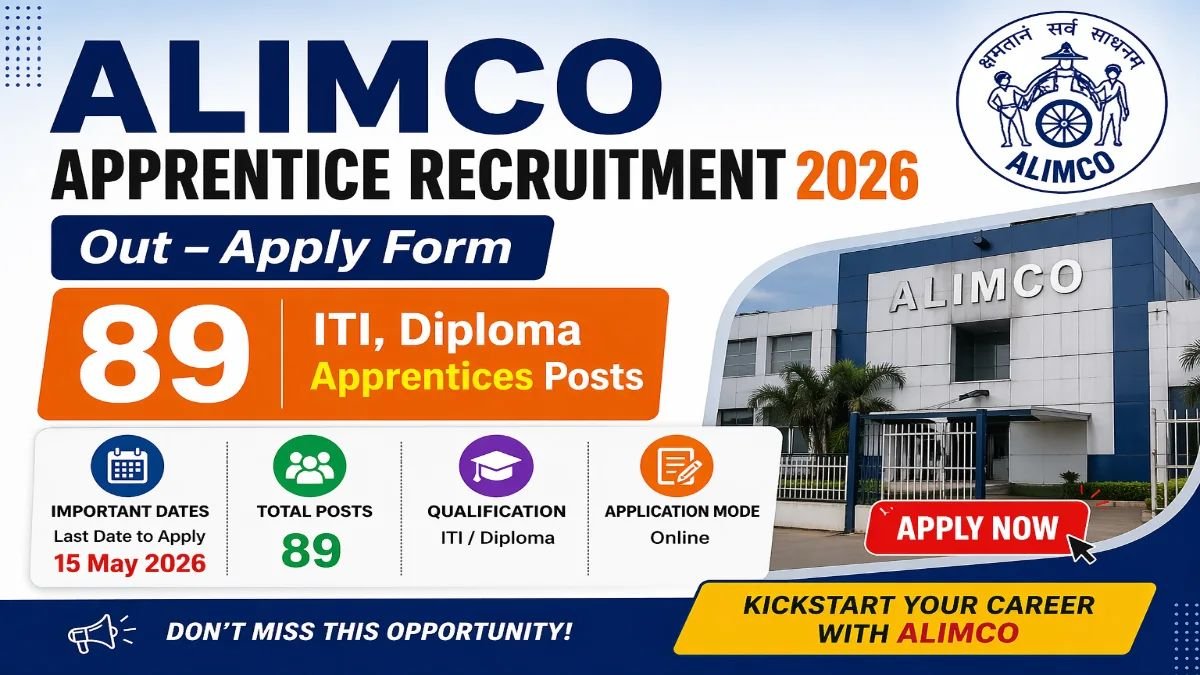 ALIMCO Apprentice Recruitment 2026: Artificial Limbs Manufacturing Corporation of India (ALIMCO) has released a notification for recruiting Apprentice Trainee posts. There are 89 vacancies available for ITI and Diploma candidates under the Apprenticeship Training program at Kanpur, Uttar Pradesh. Candidates having ITI or Diploma qualifications can apply through the offline application method before 11 May 2026. The detailed eligibility and selection process are explained below.