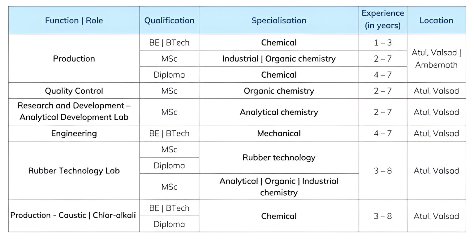 - If you are unable to attend on the scheduled date, you may send your CV to Naseem Sayyed@atul.co.in