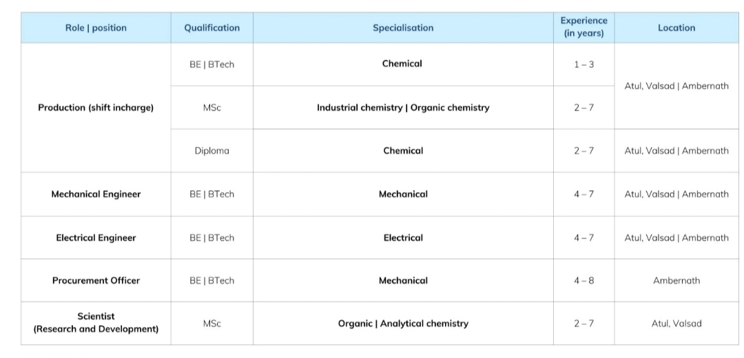 Atul Ltd Walk In Interview 2025 | Shift Incharge, Procurement Officer & Others | Diploma/Degree | November 2025 |
