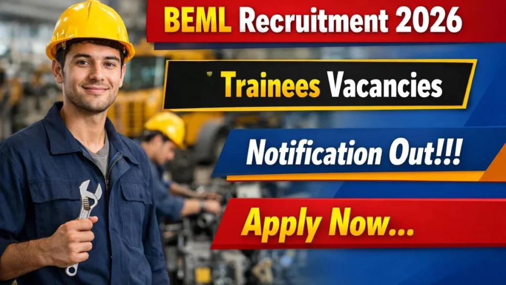 BEML Trainee Recruitment 2026: BEML Limited has released a short notification for ITI Trainees and Diploma Trainees posts under Advt. No. KP/S/04/2026 dated 27 March 2026. Candidates with ITI in Fitter, Turner, Machinist, Electrician, Welder trades or Diploma in Mechanical and Electrical Engineering can apply for this job. Interested and eligible candidates will be able to apply online through the official BEML website once the detailed notification is released. The detailed eligibility and selection process for BEML Trainees Recruitment 2026 is explained below.