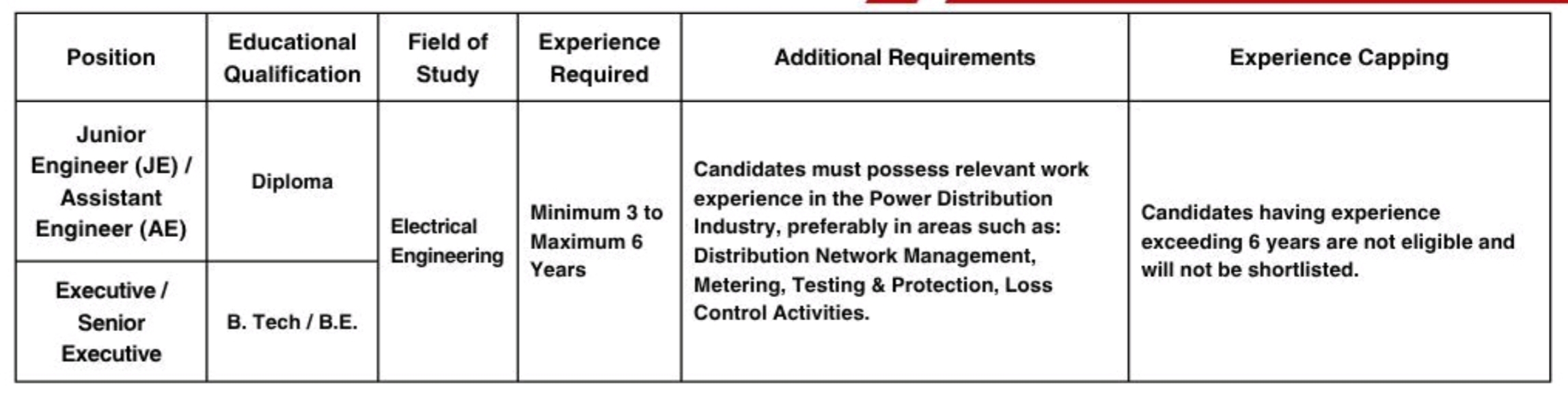 Positions :- Junior Engineer (JE), Assistant Engineer (AE), Executive, Senior Executive