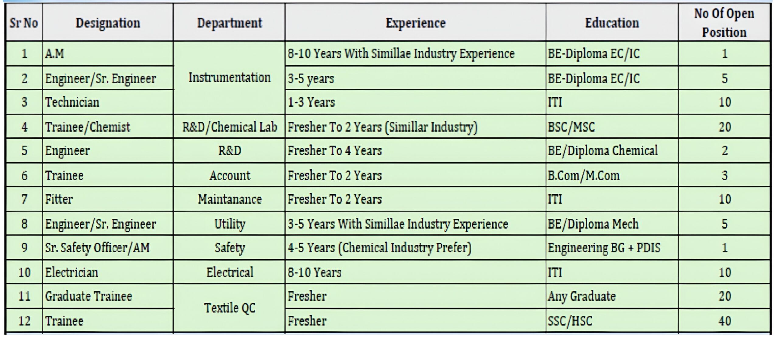 Positions :- Engineer, Sr. Engineer, Technician, Electrician & Others