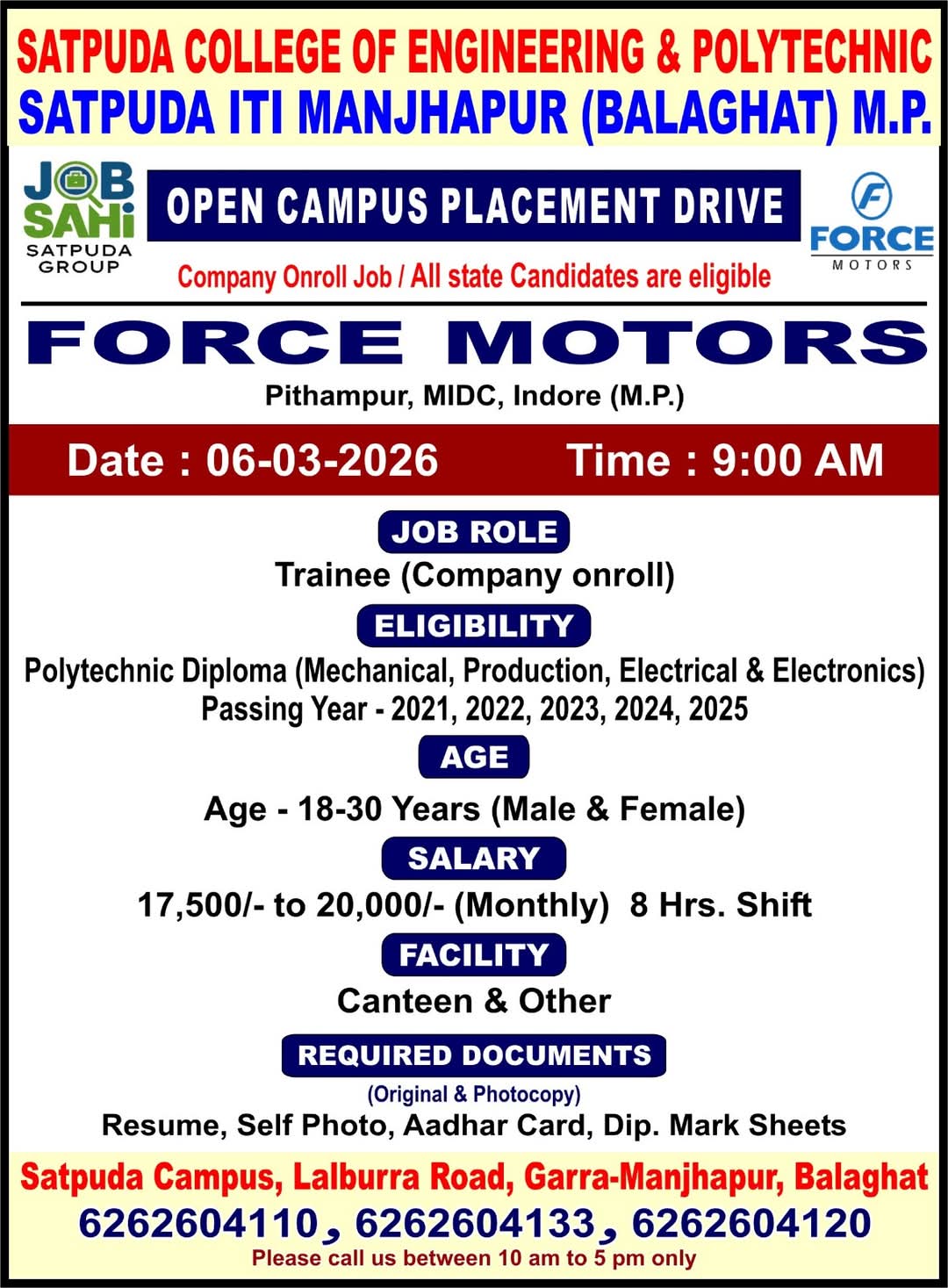 - Venue: SATPUDA ITI MANJHAPUR (BALAGHAT) M.P.