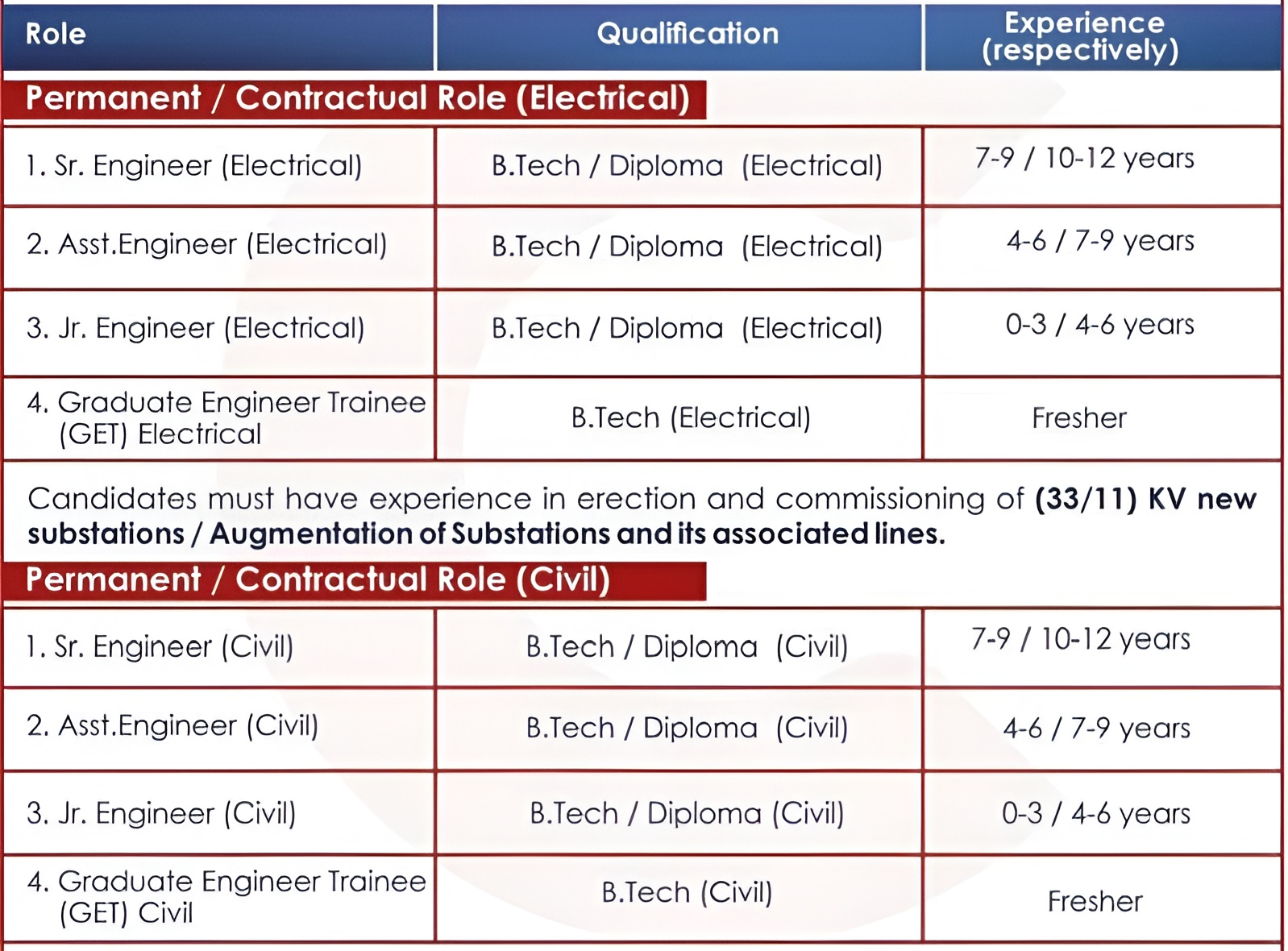 Positions :- Jr. Engineer, Sr. Engineer, Assistant Engineer & GET