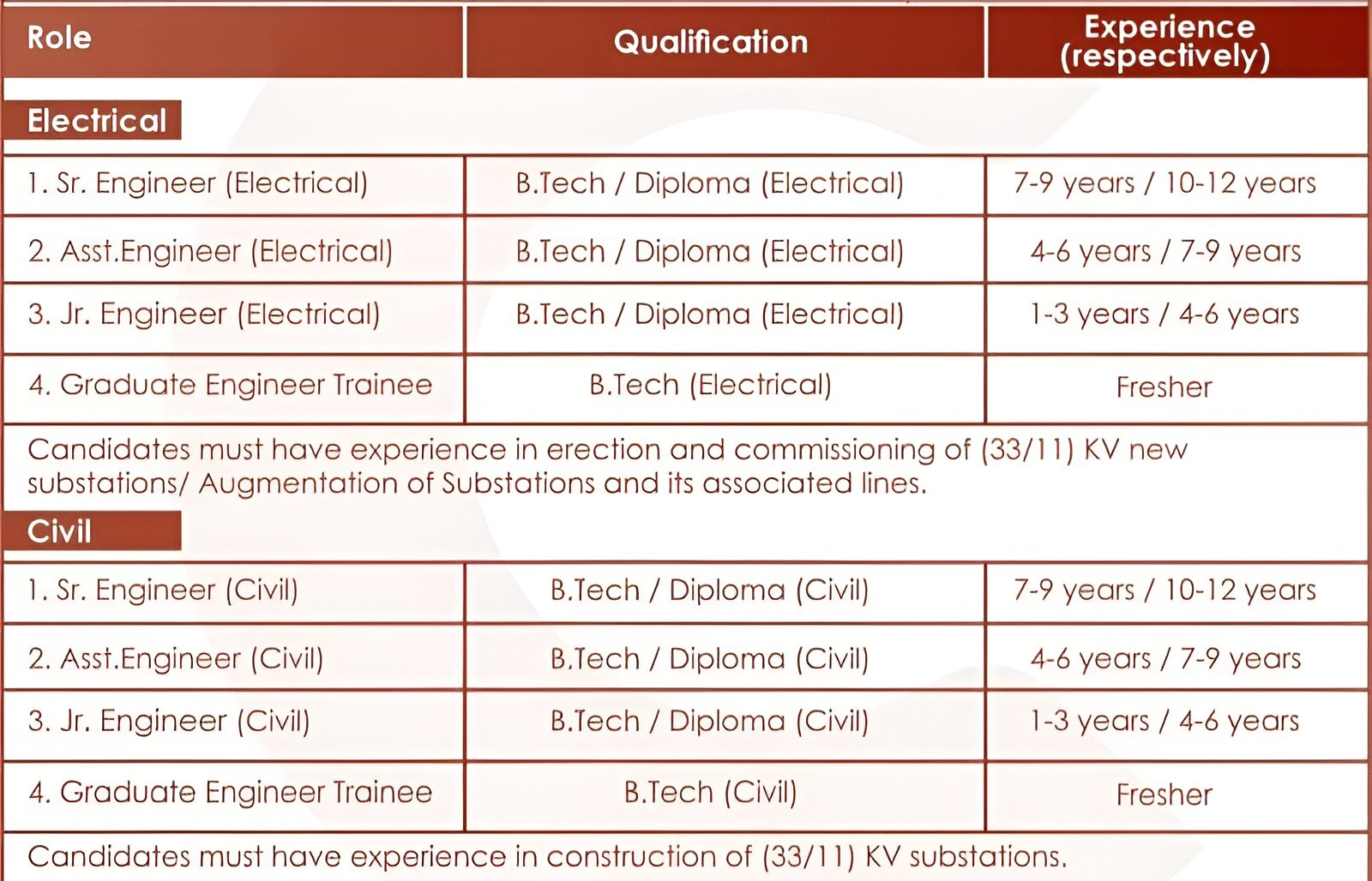 “33/11 KV new or Augmentation of Substations and its associated lines projects & Mention Position you are applying”