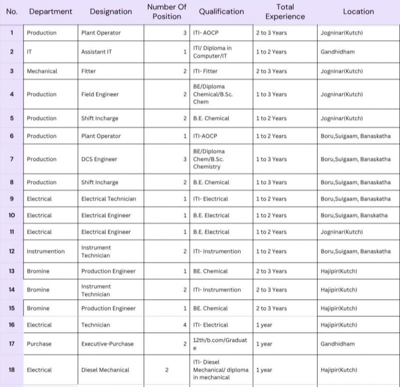 Positions :- Plant Operator, Shift Incharge, DCS Engineer & Others