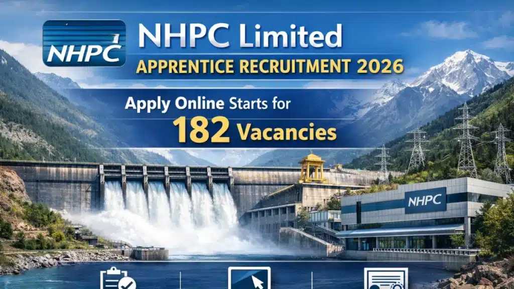 NHPC Apprentice Recruitment 2026: NHPC Limited has released a notification (Advt. No. NH/Rectt./01/2026) for recruiting Graduate Apprentice, Diploma Apprentice and ITI Apprentice posts for one-year apprenticeship training across multiple NHPC power stations and units. There are 182 total vacancies available under different apprentice streams. Eligible candidates having ITI, Diploma, B.E./B.Tech, B.Sc, MBA, BBA and other relevant qualifications can apply online from 15 April 2026 to 06 May 2026.
