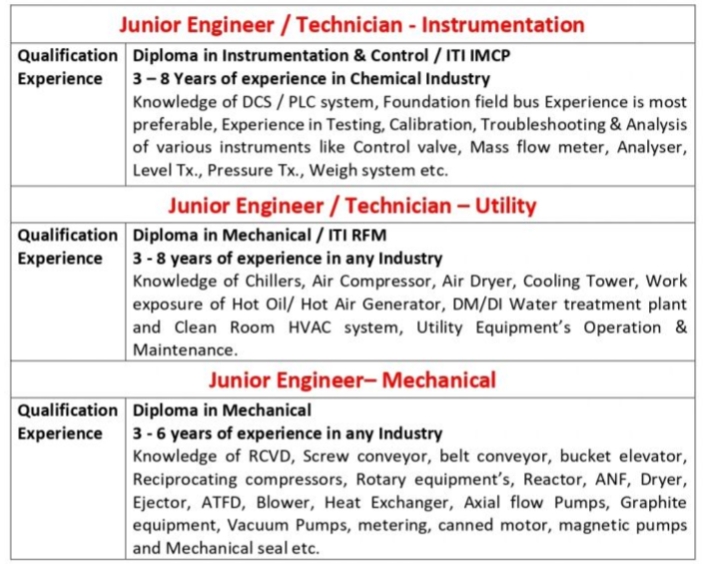 Positions :- Technician, Junior Engineer