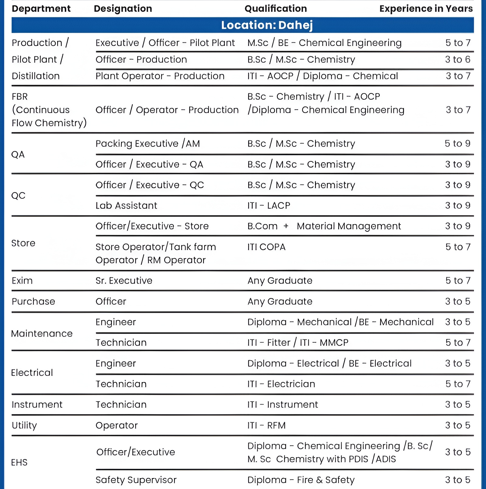 Job Location :- Bharuch, Gujarat